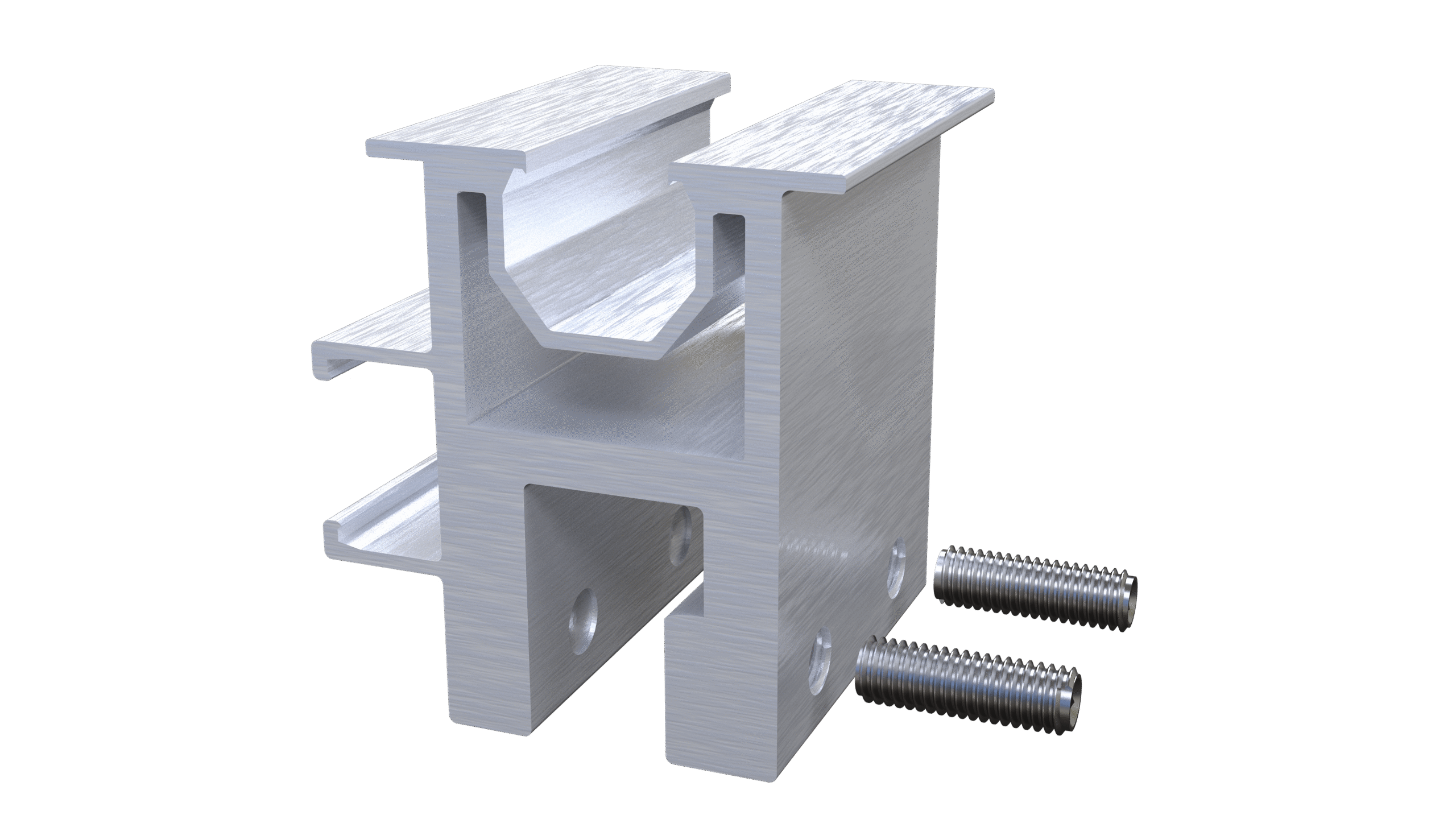 Fabricada en aluminio de alta calidad, combina ligereza y resistencia, mientras que su tornillería de acero inoxidable asegura una sujeción confiable. Este accesorio facilita una instalación eficiente, proporcionando un soporte estable para los paneles solares y contribuyendo a la durabilidad del sistema fotovoltaico.